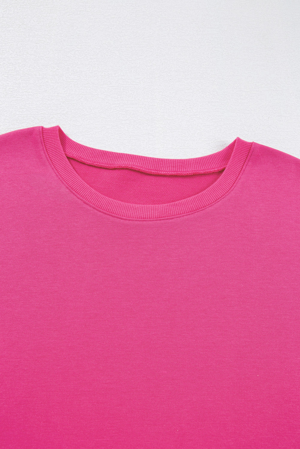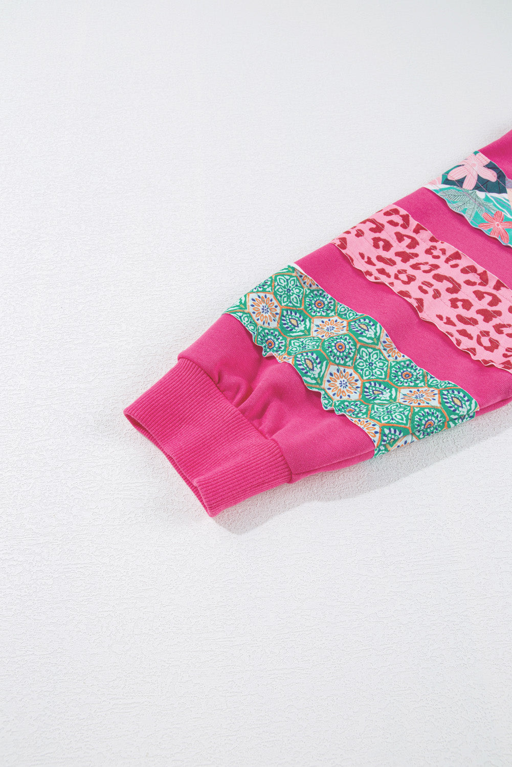 Rose Red Printed Patchwork Sleeve Split Sweatshirt