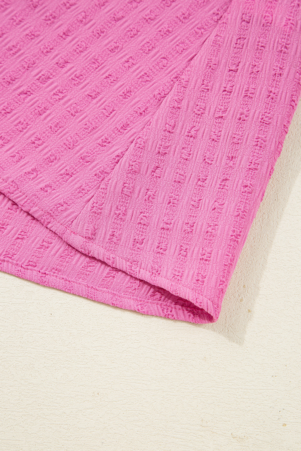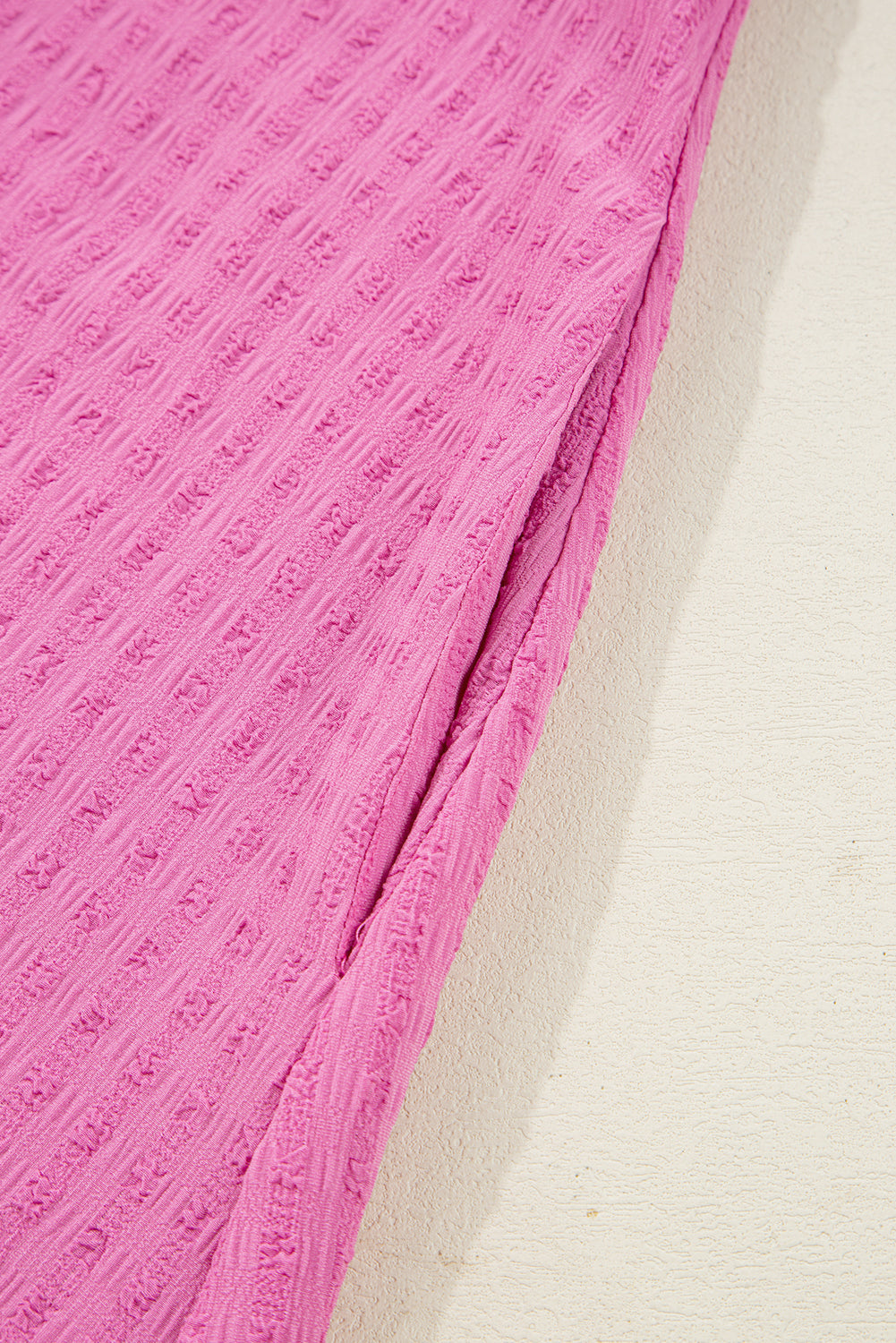 Sachet Pink Textured Tie Split Neck Puff Sleeve Flowy Mini Dress
